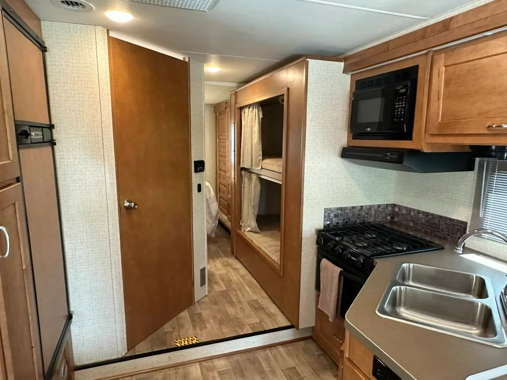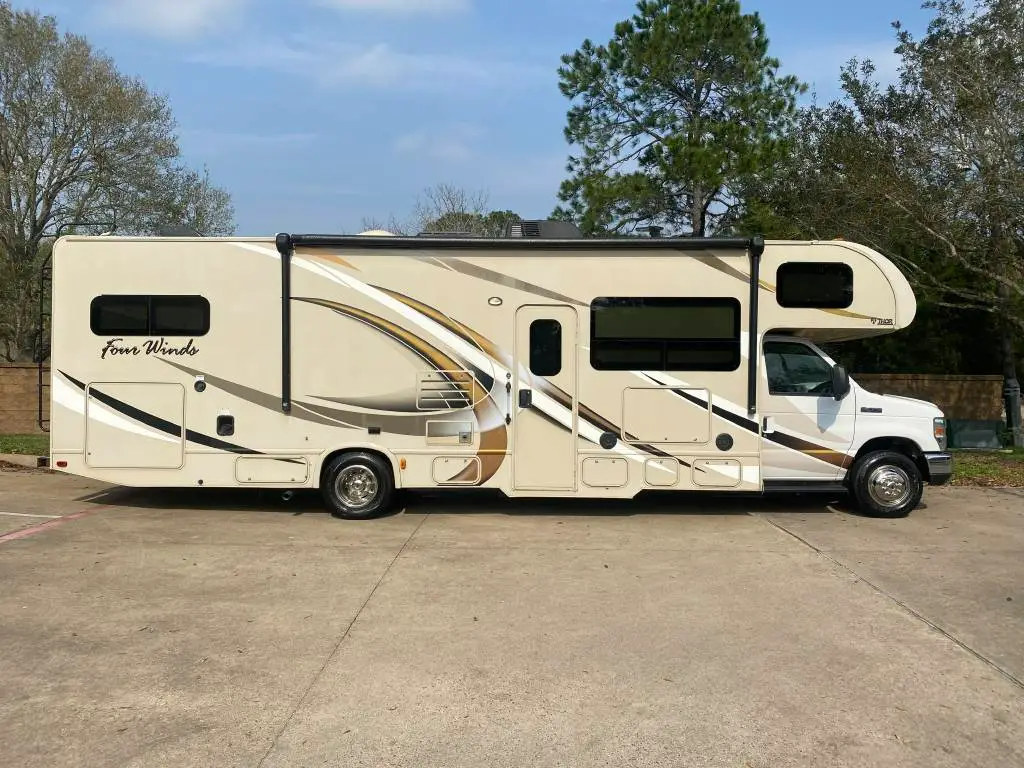 2017 Thor Motor Coach FOUR WINDS 311BHDS Class Class C, Mileage: 54,866, Fuel: Type Gasoline, VIN: 1FDXE4FS5HDC13963, Engine: Type V10, Sleeping: Capacity 8, Bunkhouse, Floorplan: No, Floor Plan: Yes, Sleep Options Bunk beds, loft, sleeper sofa, queen bed, table., Air Conditioners: 1, Slide Outs: 1, Engine Manufacture: V10, Water Capacity: 50, Leveling Jacks: yes, Exterior Colo:r Tan, Interior Color: Beige tan