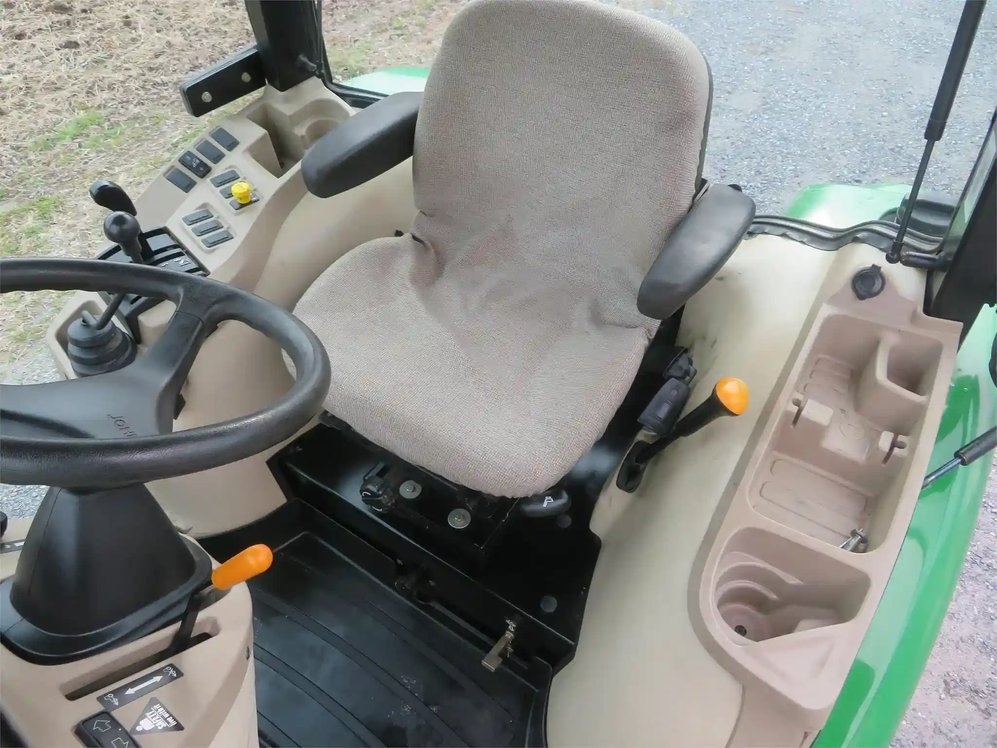 2006 John Deere 3520 Tractor with John Deere 300X Loader, – 1339 Hours, – 4 Wheel Drive – Cab / Heat / AC, – 540 PTO, – 3 Point Hitch with Top Link, – Differential Lock, – Cruise Control, – Quick Attach Loader, – 62″ JD Quick Attach Bucket, – Grill Guard, – Front Work Lights, – Front Windshield Wiper, – Glow Plugs, – Suspension Seat, – Tilt Steering, – Sun Visor, – Cup Holder
